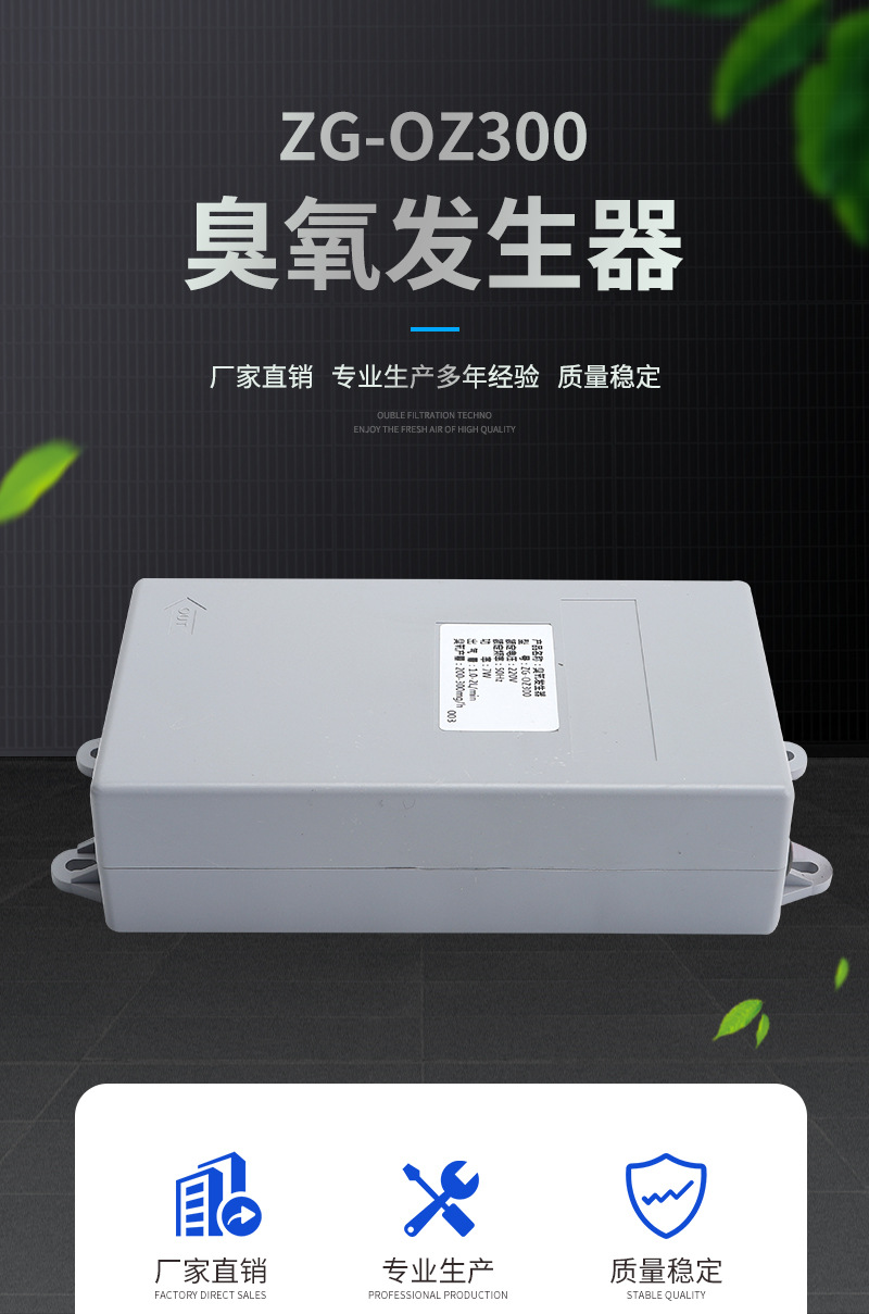 ZG-OZ300小型臭氧發生器采用最新的臭氧核心放電體,包括臭氧發生管、臭氧驅動電路和氣泵的一體化設計,只要接上電源即可提供高效穩定的臭氧輸出,安裝使用維護方便。